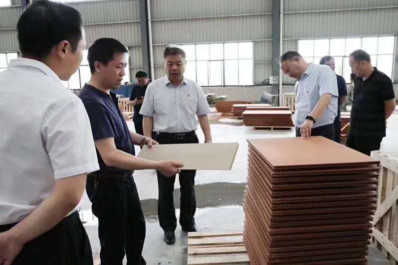 新產品【陶板幕墻】已上線,歡迎縣委來河南眾光調研,現場了解陶瓷透水磚的透水性,產品的抗折強度,抗壓強度,同時了解陶板的優點和生產工藝,施工系數,一定要保質保量,讓好的產品走向市場!